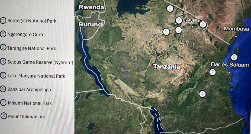 Now, let us deep dive into each of the 8 best safari (or tourist) attractions in Tanzania - see respective locations on the map: